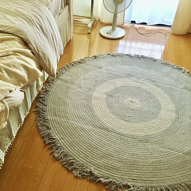 「明るい部屋づくりをテーマに、家具の色をナチュラルなホワイトオークでそろえています。部屋の印象に大きく関わるカーテンやラグにはフリンジのデザインがあるものを選び、シンプルになりすぎないようこだわりました。また、色味を明るくすることで圧迫感を減らし、部屋全体を広く見せるよう意識しています。」