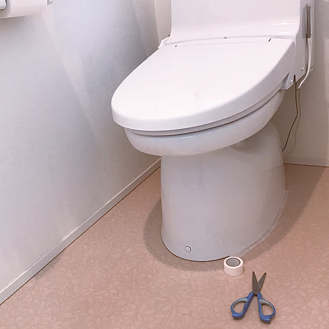 便器のすき間も、特に汚れが気になる部分。N.さんは床と便器のすき間にマスキングテープを貼り、予防掃除に役立てています。幅広のテープを使うといいとのこと。さらに上から洗ってくり返し使える汚れ防止テープを貼っています。汚れても定期的に貼り換えればいいので、掃除がすいぶんラクになったそうですよ♪