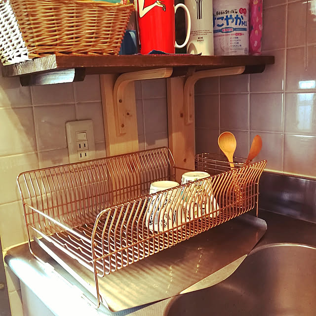 優しい雰囲気のユーザーさん宅でひときわ目を引くのは、ローズゴールドカラーの水切りラック。こちらは、hanautaのものだそうです。気分も上がる!と、ユーザーさんもその存在感には惚れ惚れしている模様ですよ。マグカップやカトラリーを乾かしているときにも、オブジェのような存在感を放ってくれています。