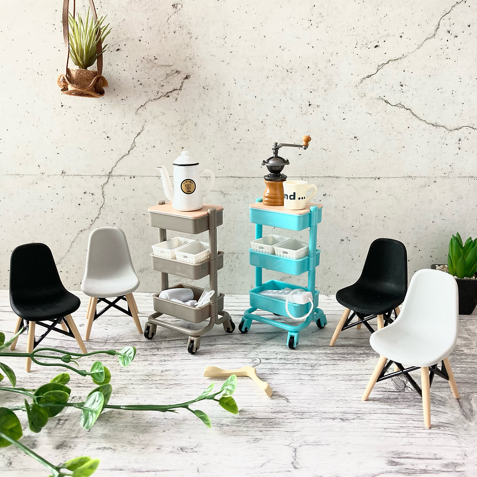 IKEAワゴン似のキッチンワゴンがあるという情報を得て、ガチャガチャを回しに行かれたyocchanさん。セリアのデザインチェア以外はすべてカプセルトイだそうです。サイズ感がぴったりで、本物と見間違えてしまいそうですね。よく見ると小さなフタやカゴもついていて、つくりの細かさにときめいてしまいます。