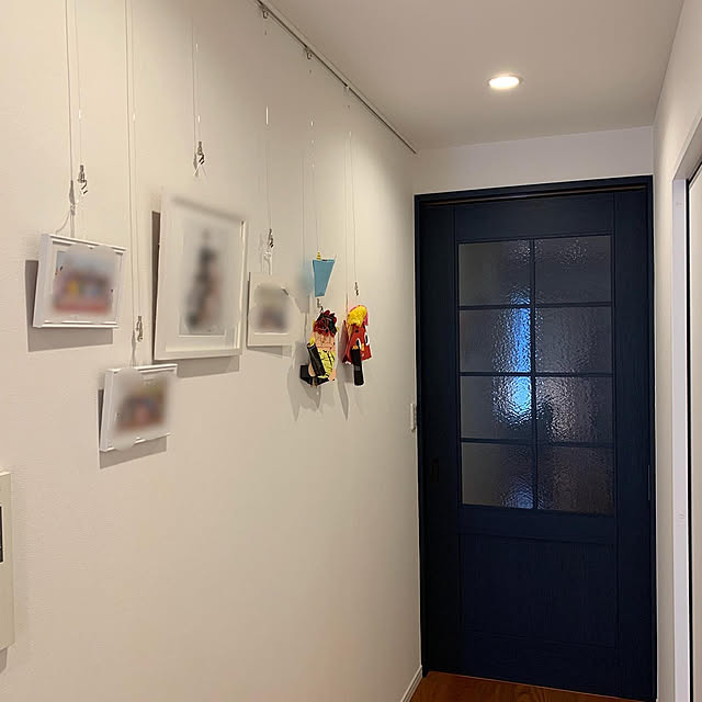 お子さんの絵を飾るのに、ピクチャーレールを活用されていたのは、torokoさんです。リビングの一角に取り付けられたピクチャーレールには、お子さんの作品が写真とともに飾られていました。吊り紐や吊り下げフックを使って、さまざまな形状の作品を飾れるのが魅力ですね。
