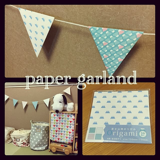 和室用に和柄のガーランドを作られていた、mahochinさん。使っていたのは、セリアの富士山柄の折り紙でした。さりげない富士山柄がキュートで、ガーランドにぴったりです。柄付きの折り紙も充実しているセリア。折り紙コーナーもぜひチェックしておきたいですね。