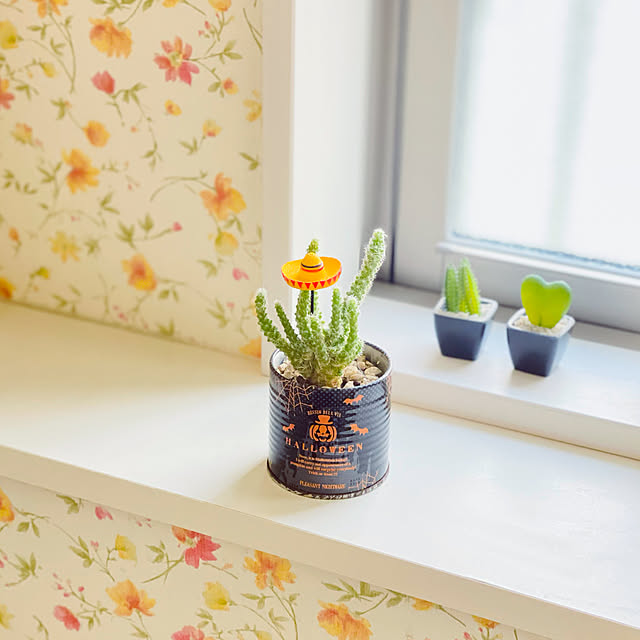 こちらはユーザーさんのトイレの壁に設けられたシェルフ。サボテンの容器と帽子ピックはセリアで購入したそうですよ。さりげない雑貨のおかげで、シンプルな空間がキュートなディスプレイにグレードアップしています♪