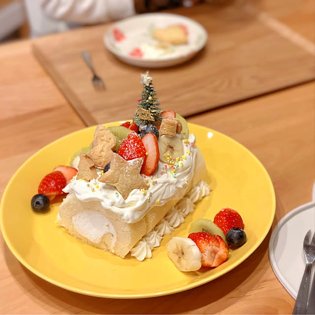 イッタラのプレートに、お子さんとデコレーションされたというケーキをのせているnatsuさん。シンプルなプレートなので、盛り付けられたフルーツの鮮やかな色が映えますね♪直径26センチと大きめサイズのプレートは、さまざまなお料理を自由に盛り付けることができますよ。