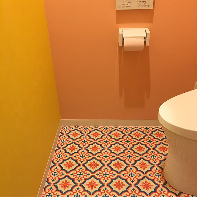 こちらのユーザーさんは、マラケシュ風のグレーがかったピンクの壁に、コラベル柄のクッションフロアを組み合わせられています。壁は壁紙屋本舗のペンキで塗装、クッションフロアはサンゲツのアイテムだそうですよ。トイレスリッパをパブーシュにすることで、よりモロッコらしい空間になっています。