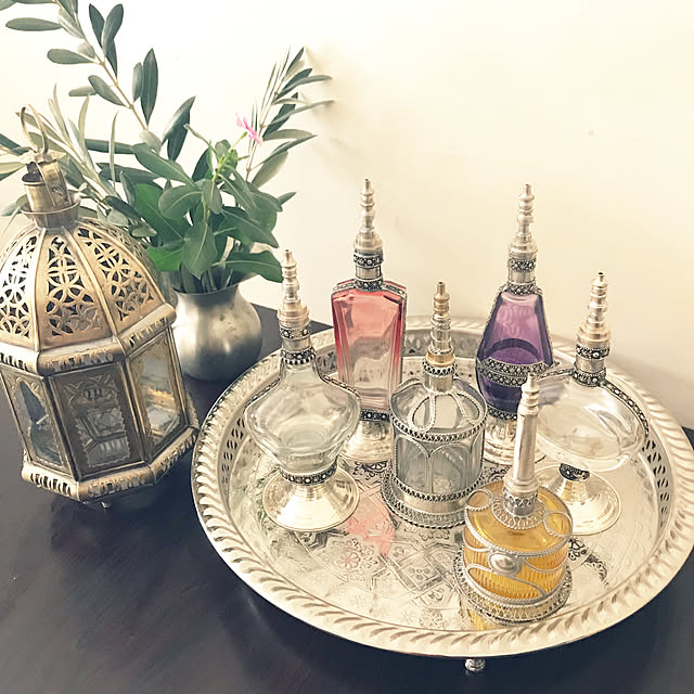 こちらのユーザーさんは、シルバートレイにさまざまな香水瓶を並べてディスプレイ。装飾性の高い香水瓶は、インテリア小物としても活躍します。お気に入りの香水を入れれば、実用性も兼ねられますね。
