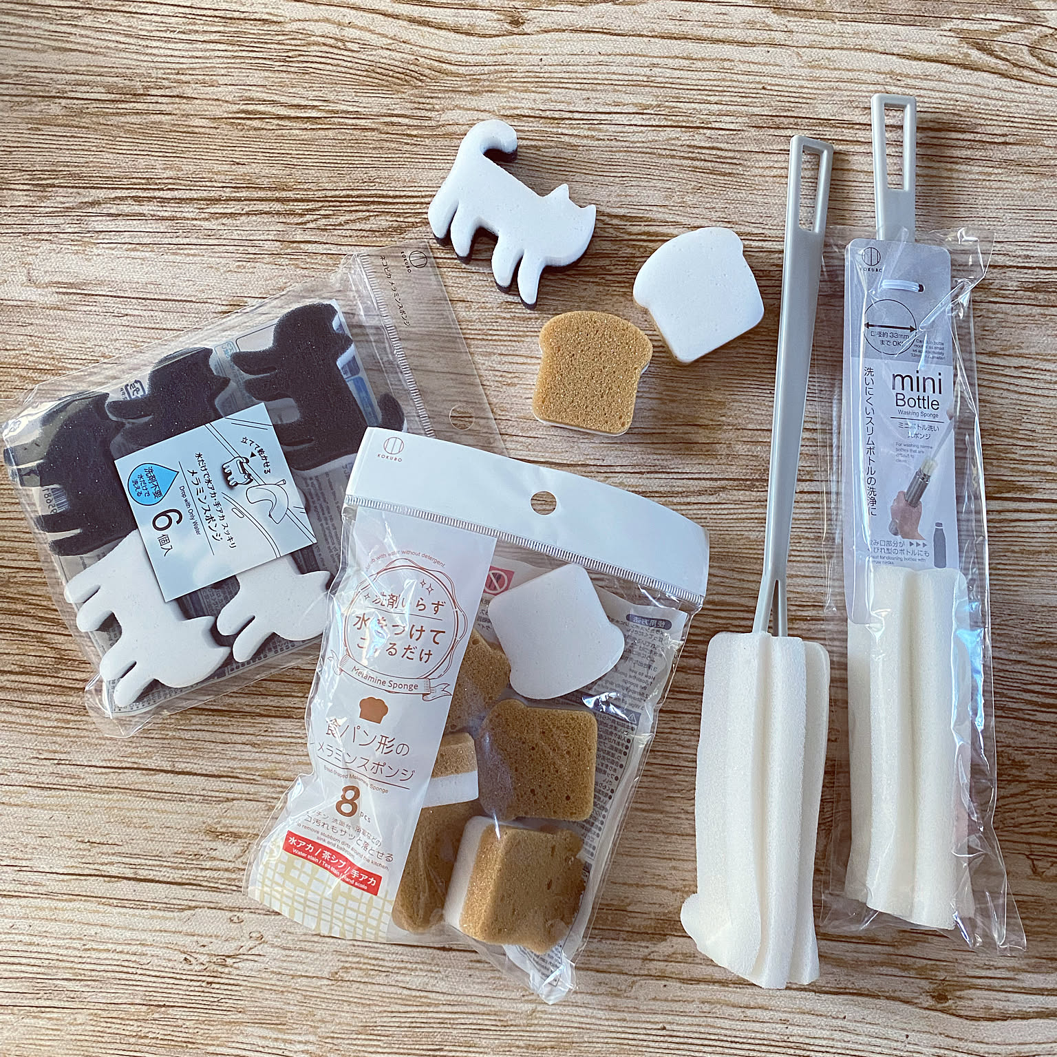 掃除には、洗剤要らずのメラミンスポンジを愛用されている方も多いのではないでしょうか。mintteaさんは、セリアで猫型と食パン型のメラミンスポンジを購入されました。お気に入りのデザインだと、気分が上がりますね♪