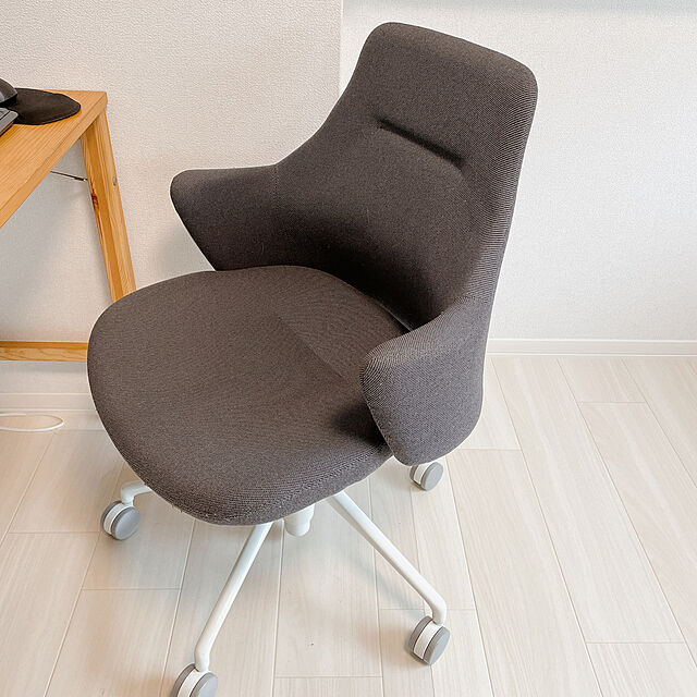 落ち着いたインテリアになじみ、長時間の作業にも快適なデスクチェアを探していたというユーザーさん。採用されたのは、インテリアブランド・Re:CENOの「オフィスチェアWIRY」です。キャスターと昇降・ロッキング機能付きという快適性と、まるでソファのような柔らかな座り心地が魅力のようです。