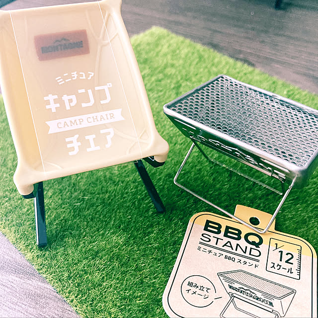 RNAさんがセリアで購入されたのは、「ミニチュアキャンプチェア」と12分の1スケール「ミニチュアBBQスタンド」です。芝生風の背景と合わせてコーディネートしても◎。リアルなつくりで、飾ったり遊んだり楽しめそうですね。
