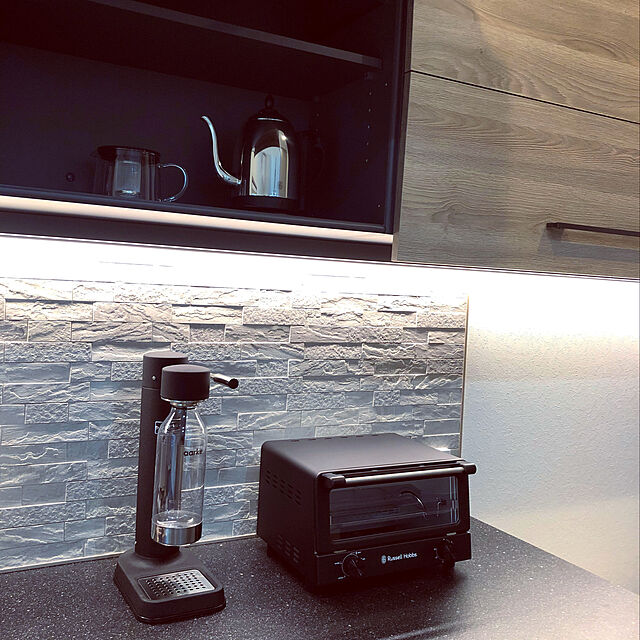 na_tan.grandsaisonさんのキッチンにあるのは、庫内が大きく使いやすい「Russell Hobbsマットブラックオーブントースター」です。マットな質感が生活感を感じさせにくいデザイン。モダンなキッチンによく合っていますね。
