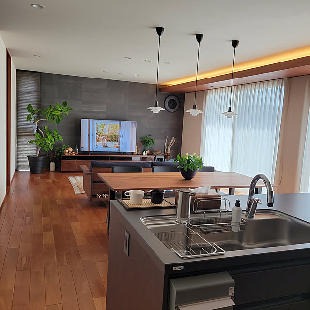 次にご紹介したいのは、細長いお部屋をリビングダイニングにしている実例です。スペースの使い方が限られてきてしまいそうな細長いお部屋でも、家族みんながくつろげるリビングをつくることは可能なようですよ。さっそく、実例をご覧ください。