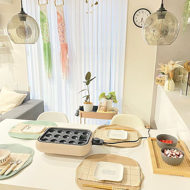 shilohyさん宅のこどもの日は、お子さんのリクエストでたこ焼きパーティーをされました。テーブルの中央にたこ焼きプレートを置き、右端に具材を準備されています。お子さんも一緒に楽しめて、お祝いにぴったりですね。ランチョンマットもテーブルのアクセントになっています。