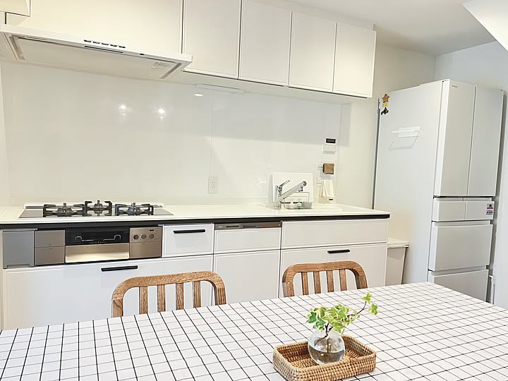 「清潔感のあるキッチンにしたかったので、ワークトップもシンクも全てホワイトを選びました。毎日使う場所だからこそ、あえて汚れの目立つホワイトに。小まめに掃除をして、キレイと清潔感を保っています。」
