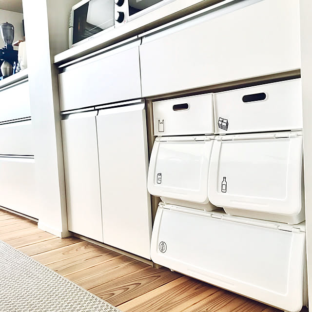 キッチンの下の空間で、ニトリの収納ケース・フラッテを使っているユーザーさんがこちらです。なかの物を取り出しやすいケースで、使い勝手は抜群ですね。真っ白な色合いも周りのインテリアと統一されていて、清潔感あふれる空間に仕上がっています。