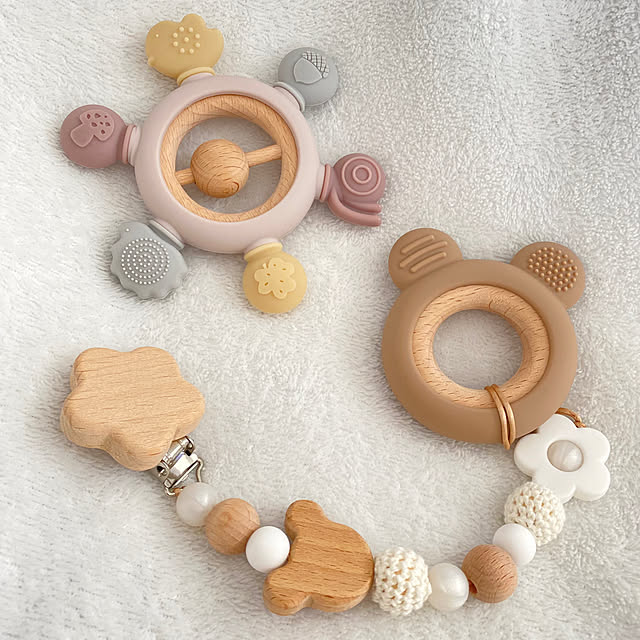 歯の生えはじめに木製の歯固めを選んだのはseki3さんです。あたたかみのあるデザインが特徴で、赤ちゃんの歯やあごの発達をサポートしてくれています。使わなくなってもインテリアのディスプレイとして飾っておけそうなくらい、可愛らしいアイテムです。