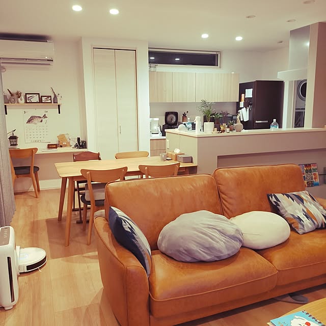 写真の隅に写っているのは、Neabotのロボット掃除機「Q11」です。ゴミ吸引と同時に拭き掃除もしてくれるので、気になる床の皮脂汚れや油汚れもピカピカにお手入れできます♡ 障害物もしっかり回避してくれるので手間いらずで、常に清潔なリビングやダイニングをキープできますね。