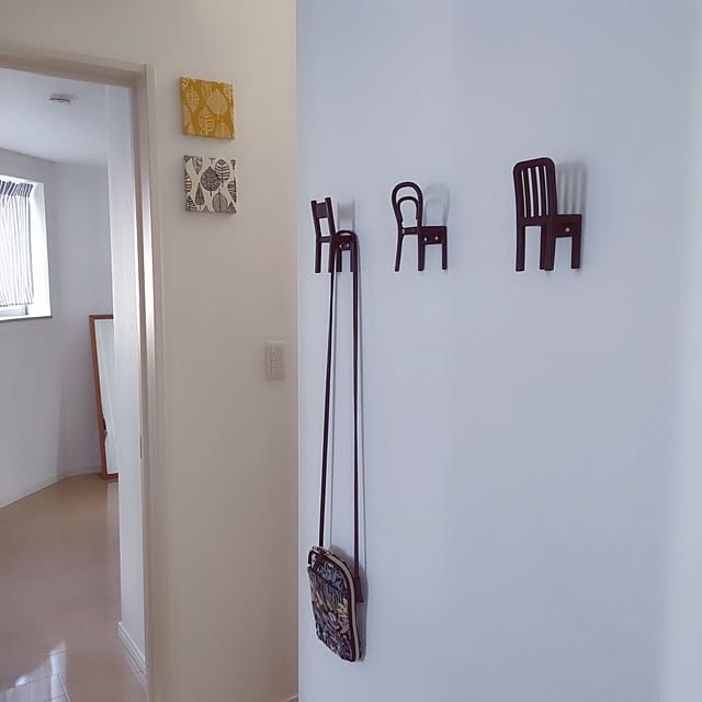 pinponmamさんは、玄関付近の壁にIKEAのフック「フィアンティグ」を設置されました。背もたれが異なる3種類の椅子がモチーフになっています。3つセットなのもうれしいポイントです。遊びごころのあるデザインに惹かれますね。