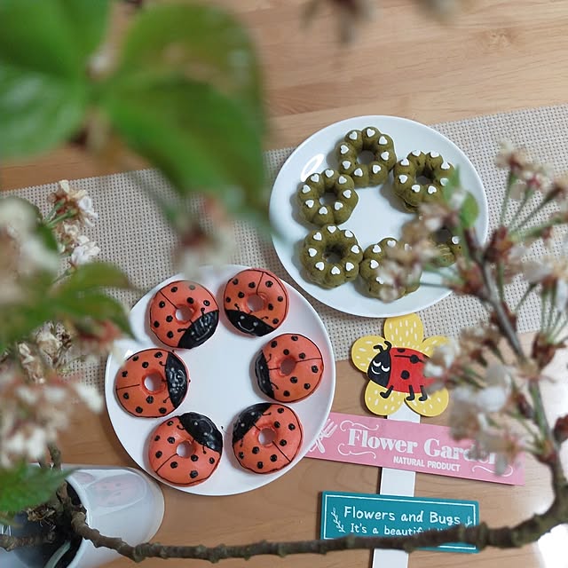 春はうきうきしてお出掛けがしたくなる季節ですよね。mash-room.aeさんは、お友だちとお花見へ行かれる際に、焼きドーナツを手作りされました。とても華やかなデコレーションで、気分が弾みますね♪シンプルな器なら、お菓子がより映えます。