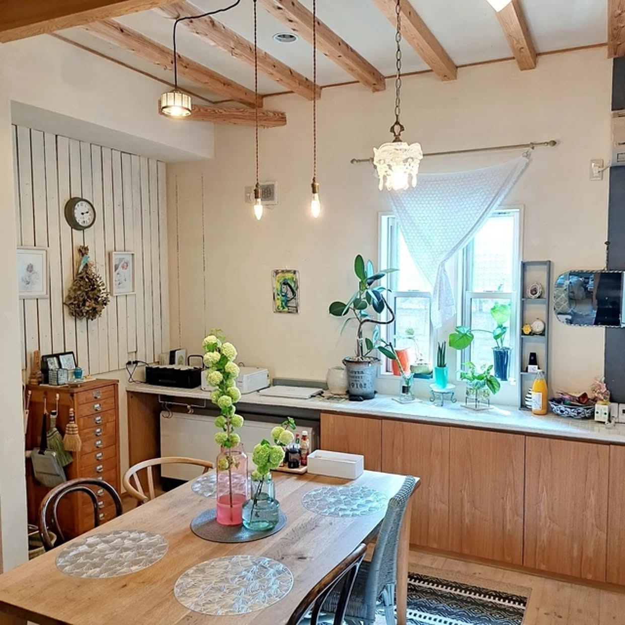 あちこちに木をぜいたくに使ったanko44さんのおうち。自然素材を使った壁紙をはじめ、クラフト感のある素材やグリーンなどを取り入れ、より心地の良いスペースをつくっています。