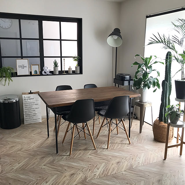 Dream Stickerのフロアシートで施されたヘリンボーンの床が、お部屋に洗練された雰囲気を与えています。ユーザーさんが目指した「海外カフェ風」のシーンが、選んだ素材や家具の配置によって見事に実現されています。木目調の床が持つ温かみと、モダンな家具の組み合わせが、居心地の良い空間を生み出していますね。