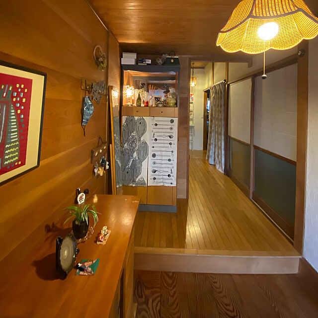 築40年以上の日本家屋で暮らしているというユーザーさんの実例です。しっかりとした作りの広い玄関や長い廊下で、帰宅した瞬間ほっとした気持ちにさせてくれそうですね。花びらのようなランプシェードもレトロなテイストを醸し出してくれています。