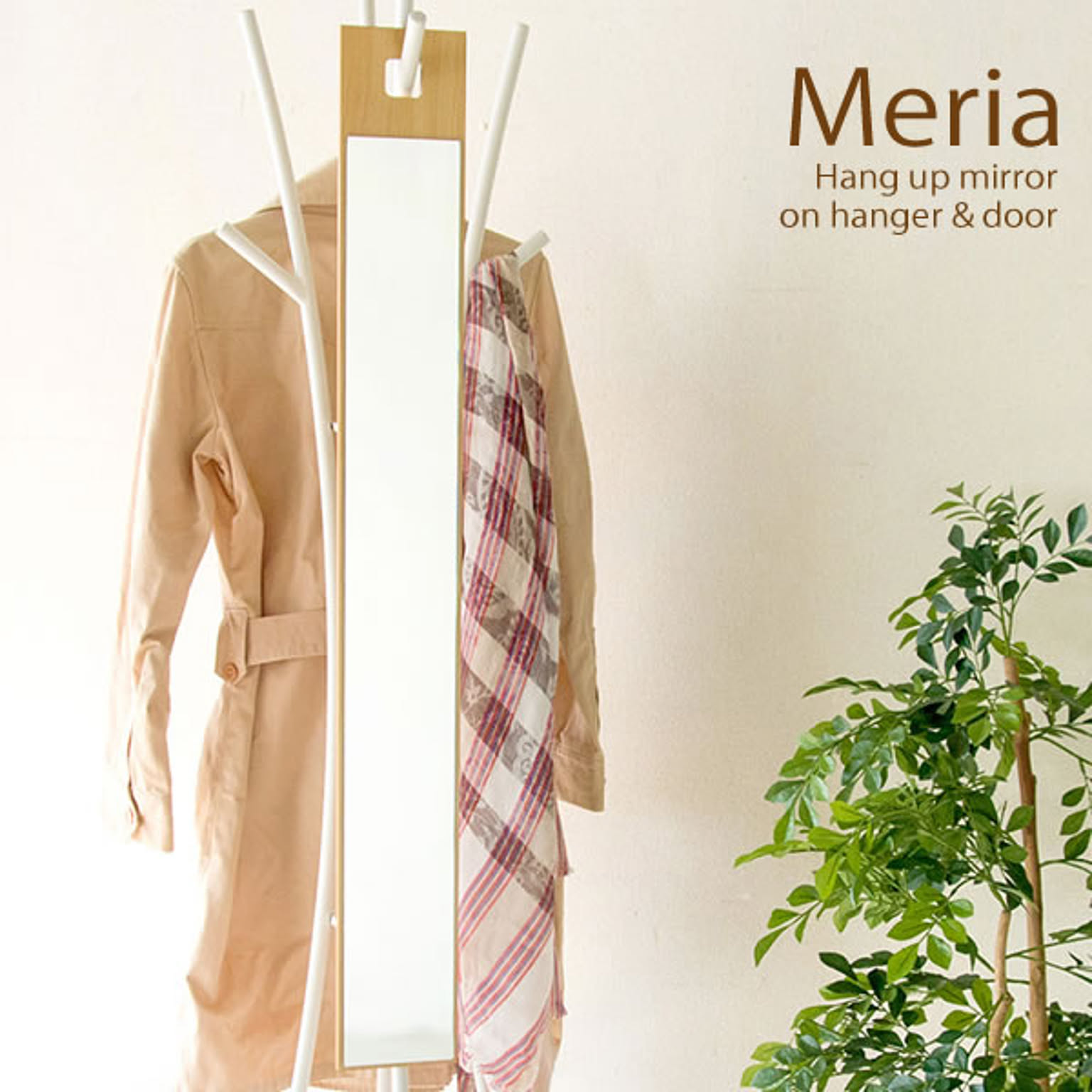 tsuguriさんのお部屋を見てみると、入り口近くのわずかな壁にミラーがありましたよ。宮武製作所のスリムミラーは幅がなんと12.5cmと、とてもスリムです。軽量なので、ドアやクローゼットの扉にも吊り下げられますよ。きれいな木目が主張しすぎず、さりげなく掛けておくことができます。