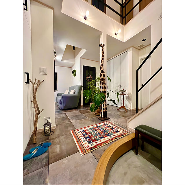 リノベーションで、玄関とリビングを繋げたユーザーさんです。新しい玄関の顔として選んだのは、イケヒコの玄関マット プルメリア。エスニックなキリム柄が、広々とした空間のアクセントになっていますね。「鮮やかなキリム柄で視覚的にも温かみを感じます」と、ユーザーさんもお気に入りでした。