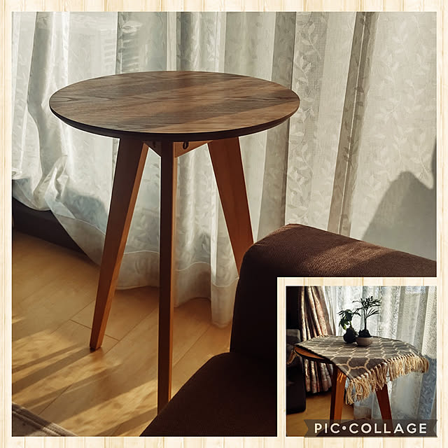 すっと伸びた3本脚が印象的な、円形サイドテーブルTeto。ナチュラルな中にも洗練された雰囲気がただようデザインです。ユーザーさんはテーブルではなく、飾り棚として使用したいとのこと。クロスをあしらった飾り方も素敵ですね。やや高さのあるテーブルなので、ディスプレイも映えそうです。