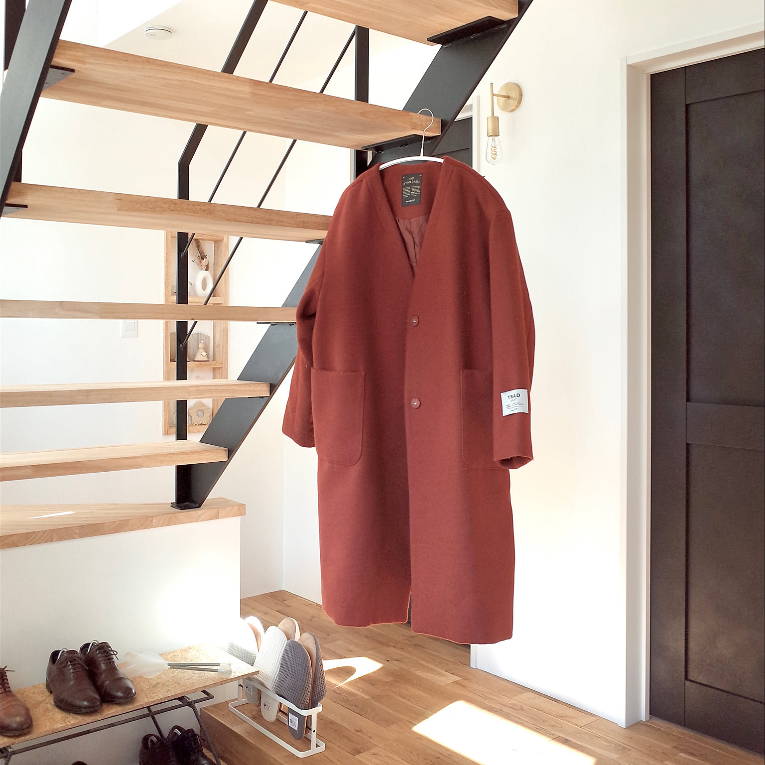 お客さんのコートを預かったときに、このように階段に掛けることがあります。