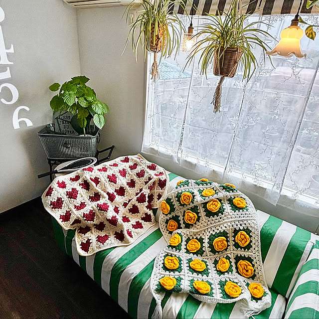 RoomClip運営チームが選んだのは、mymiさんの投稿です。リビングで愛用されている2つのブランケットは、なんとご自身のハンドメイドだそう!ポップな色合いが可愛らしく、ソファや椅子に掛けておくだけでもパッとお部屋が華やぎますね♪立体的に編まれたお花や手編みの質感は、暖かさだけでなく手触りも楽しめ、さらに癒されそうです。手作りで愛着もひとしおなmymiさんの投稿でした!