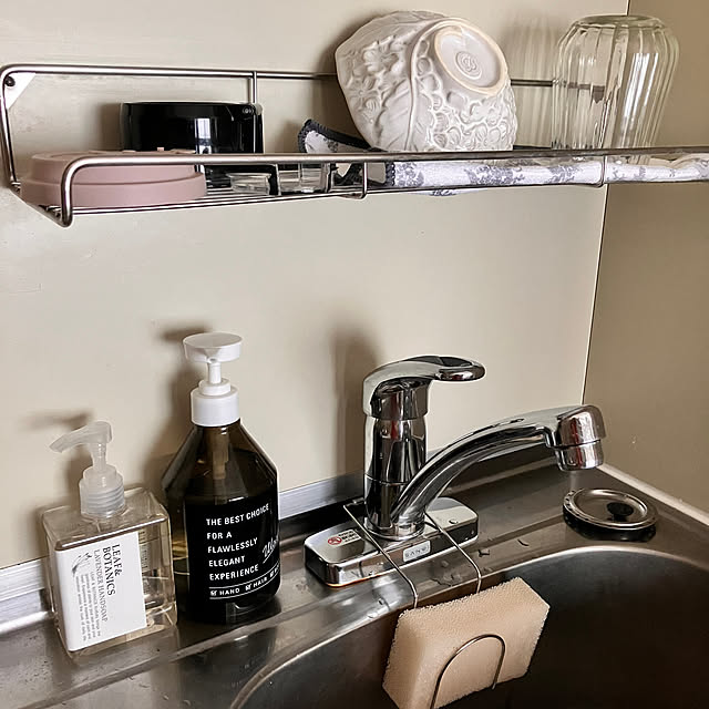 manamiracleさんが使っているのは、キャンドゥのスポンジホルダーです。ステンレス製で蛇口に引っ掛けられるデザインで、使い勝手がいいのでお気に入りだそうです。シンプルなアイテムでそろえてあって、スッキリしたシンク周りになっていますね。