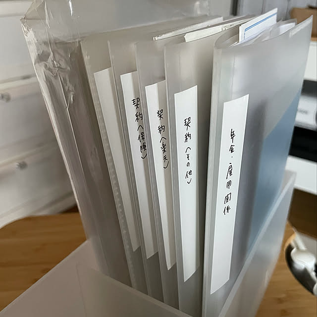 紙類はなるべく減らしたいものの1つですが、どうしても手元に残さなければならない書類などもありますよね。そこでTommycoさんは、B5サイズのクリアホルダーでコンパクトにまとめていました。開くとA4サイズになるので、見やすさも確保されるんだとか。そろえて使えばコンパクトにまとめることができます。