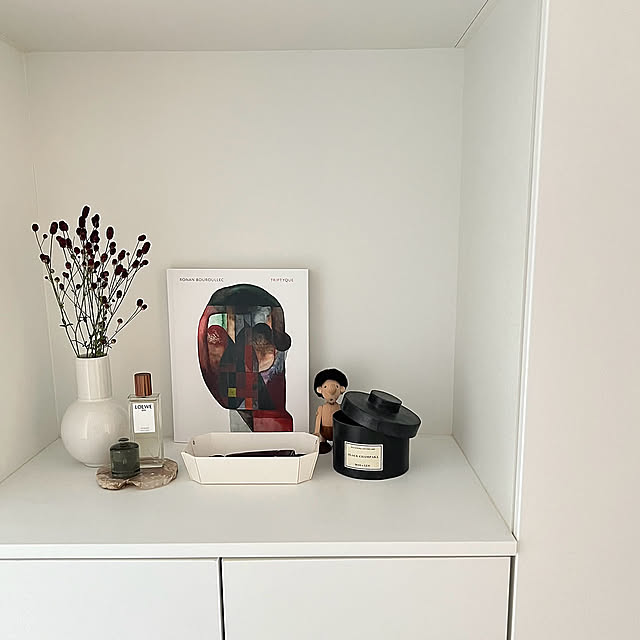 北欧インテリアにコーディネートしているユーザーさんです。concrete craftの「8_TRAY」というトレイに印鑑を収納していました。ホワイトを中心にまとめられたコーナーには、ディフューザーや花も飾られていて、心地よいコーナーになっていますね。印鑑が置かれていても、生活感が出ていません。
