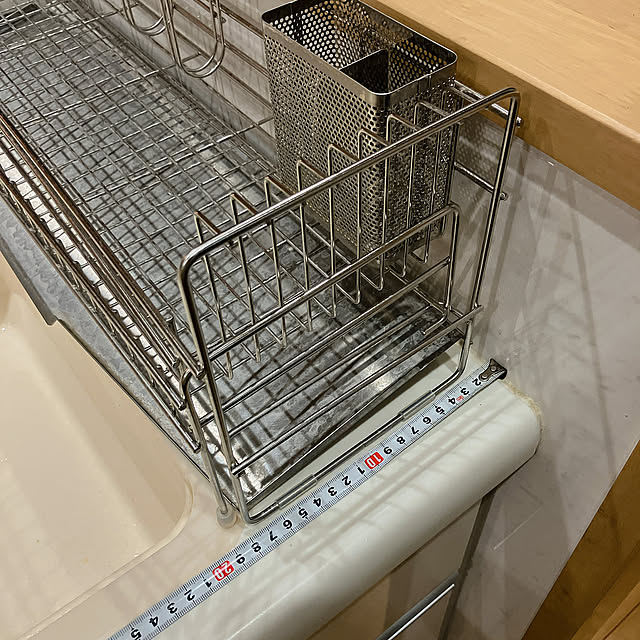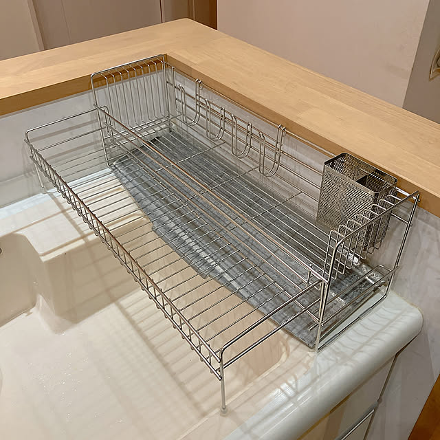 「水切りカゴは場所を取るので、今流行りの水切りマットがいいかな?と考えていたのですが、設置幅16cmの水切りカゴがあると知った時は驚きました。『これだ‼︎これしかない!』と即決!収納の達人、コジマジックさんと共同開発された商品なので、こだわりが沢山詰まっていてとても使いやすいです◎」
