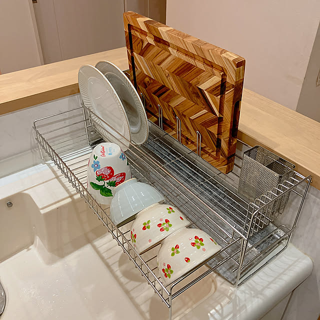 「お皿もお茶碗も立てて乾かせるので、乾くのが早いです。燕三条で作られた安心の日本製!オールステンレス製で作りもしっかりとしています。
