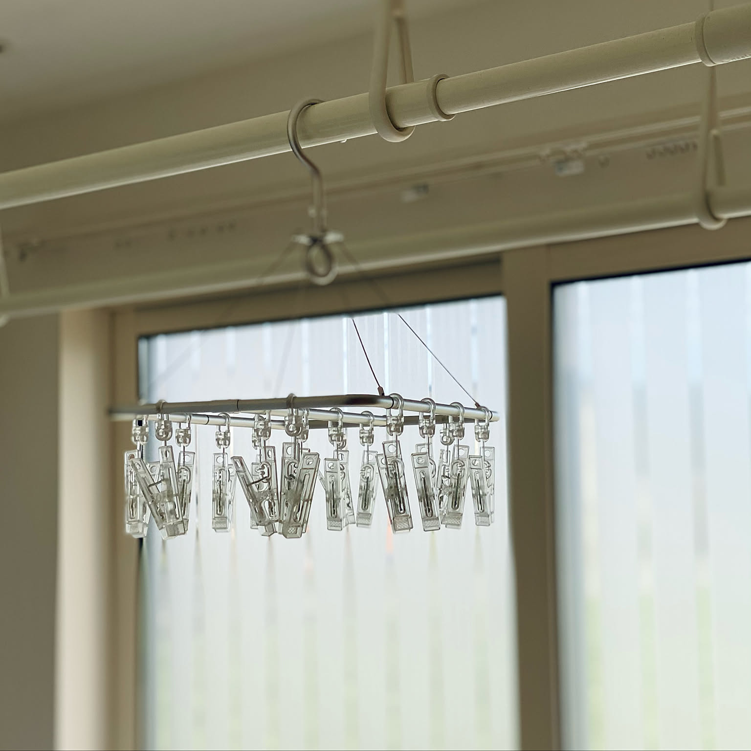 Yuuuuさんは、直線状に洗濯ばさみが付いているハンガーを使っています。こちらのハンガーは、スリムで邪魔にならないところが気に入っているそうですよ。ランドリースペースの隙間やキッチンなどのちょっとしたスペースを有効活用できるハンガーです!