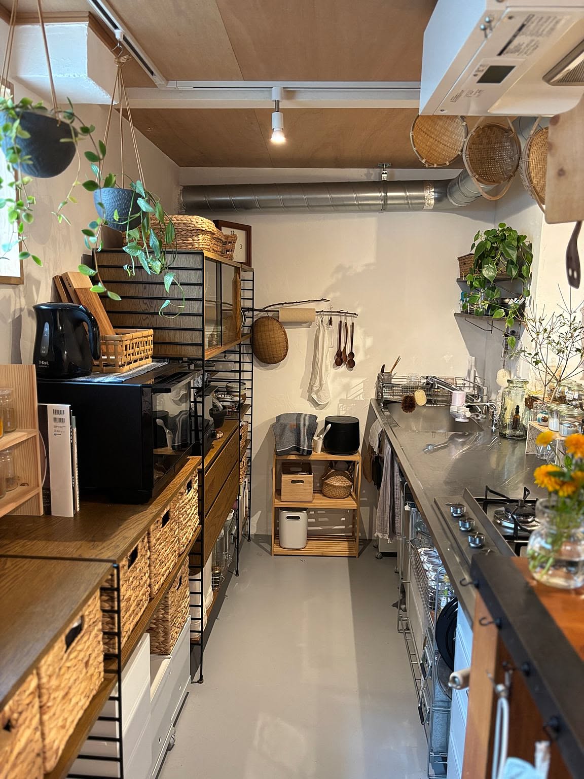 拝見させていただいたのは、buntamaさん宅の中でも物や道具、生活感がぎゅっと集まるオープンキッチンの収納です。ナチュラルな風合いや程よい生活感から漂う心地良いぬくもり、そして機能的に研ぎ澄まされたステンレス素材のシャキッと感のコントラストが絶妙ですね。キッチンで陥りがちな『物や色の洪水』とも無縁そうに感じます。その秘訣となるのは、やはり収納の工夫やこだわりだと思うのですがいかがでしょうか?