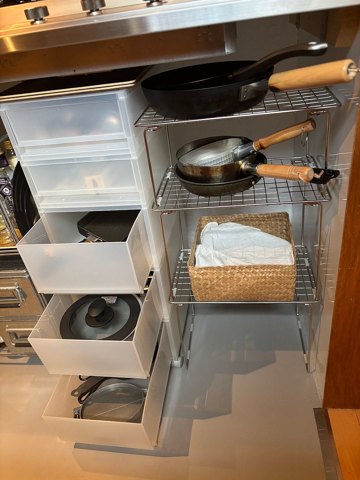 「奥行きが深い収納よりも、浅い方が『どこに何があるのか』の把握がしやすいと思います。奥行のある収納のばあいでも、できるなら浅く配置するのがおすすめ。しまい込まず、使いやすさを一番に考えた収納を心がけています。」