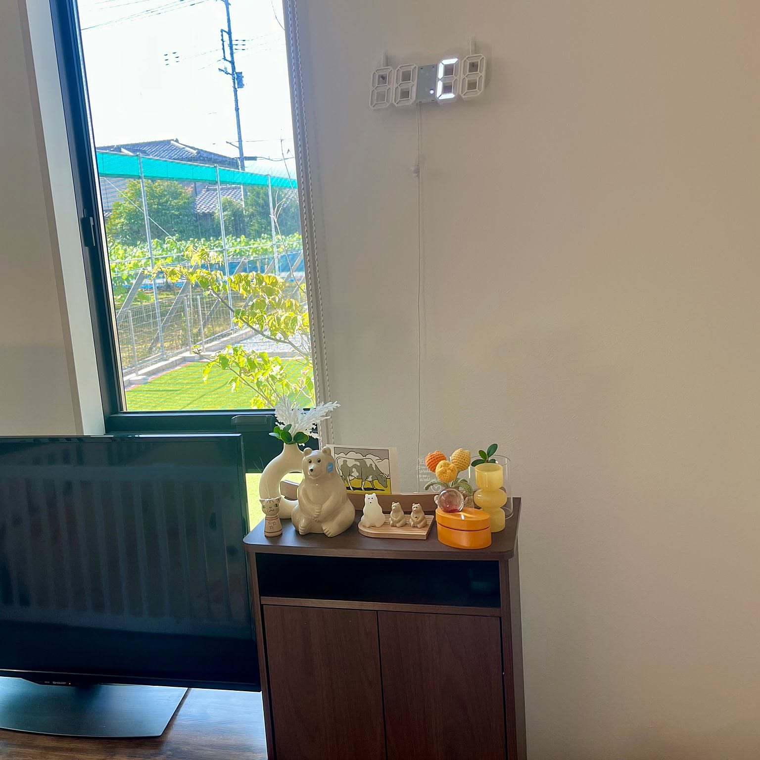 Wi-Fiのルーターやゲーム機、コンセント、本といった色々な物を隠せて便利です。棚の上にはお気に入りの雑貨を飾っています♪
