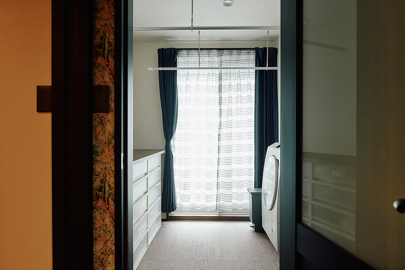 「以前住んでいた場所は車通りが多く、洗濯物を外に干せなかったので、折り畳めるタイプの置き型の物干しと浴室乾燥を使っていました。いま住んでいる場所は風が強く、家を建てる前に『外には干せないだろうな』と分かっていたので、家の中ですべての洗濯家事を完結させられるように、ランドリールームをつくりました」