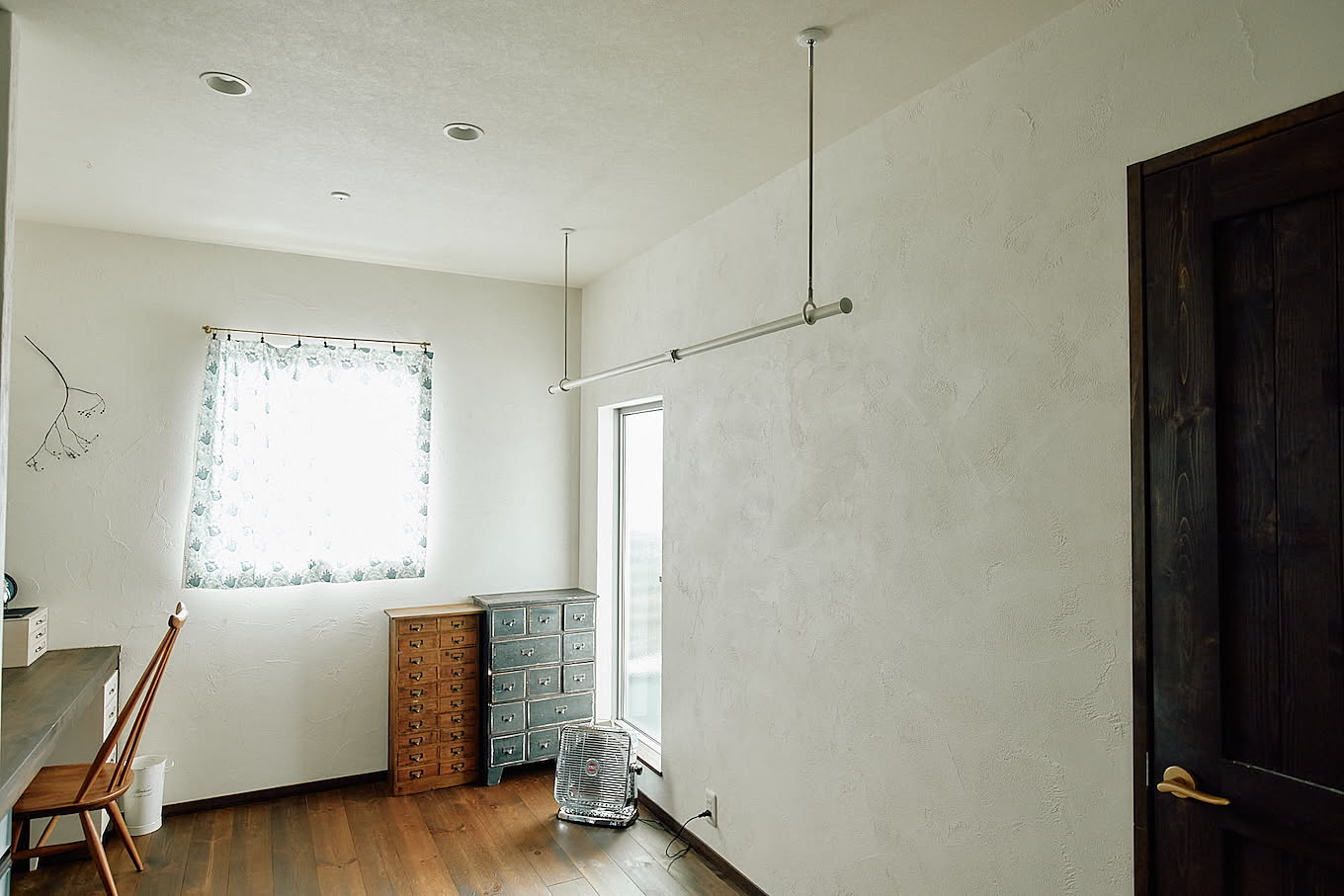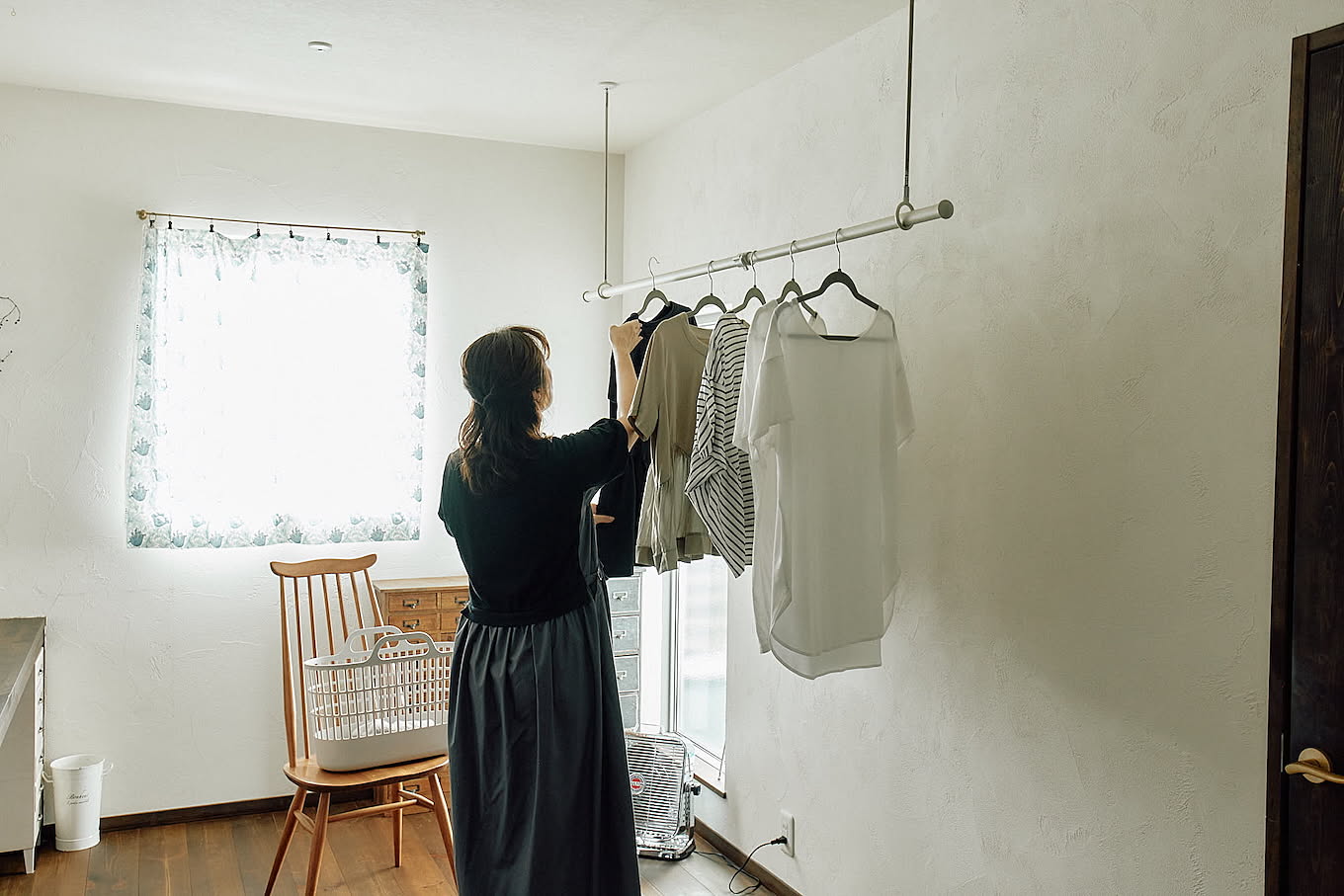 前に住んでいた場所では室内干しをすると結露していたこともあり、新築の際には調湿できる自然素材にこだわったといいます。