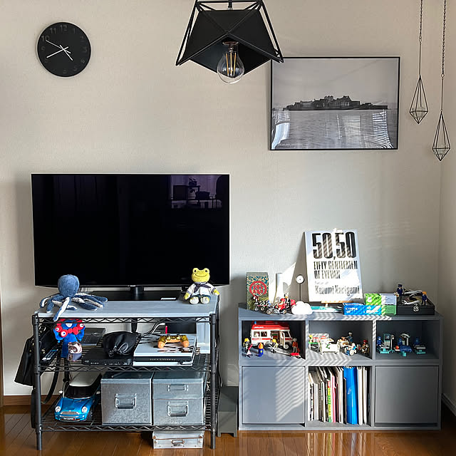 extremeJiaXuさん宅は、2DKの間取りです。玄関・水まわり→寝室→リビング兼仕事部屋の3つの空間に分かれており、それぞれテイストを変えながらインテリアづくりを楽しまれています。まず拝見させていただいたのは、お住まいの中でも一番奥、バルコニーに面した『リビング兼仕事部屋』のリビングパート。アイアンのアイテムを中心に、ブラックやグレーでクールにまとめられています。でも、『インダストリアルほどごつくならないように心掛けている』とextremeJiaXuさん。確かに、塩系のさっぱりさやちょっとした愛嬌も感じられて、雄々しすぎません。