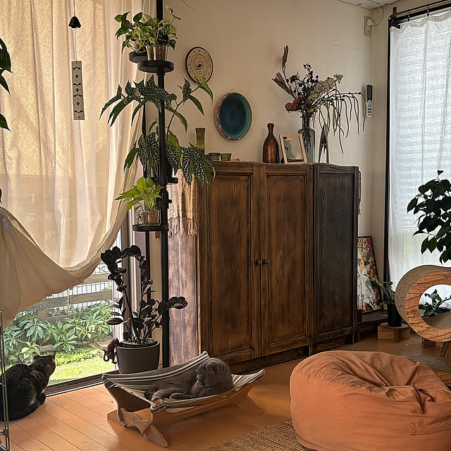 築17年の家に、家族3人+猫3匹で暮らしています。もともとモデルハウスとして使用された家を家具ごと購入したのですが、徐々に自分の趣味や感覚が変わったことで生じはじめた違和感と向き合ったら、自分がやりたいインテリアがわかって楽しくなってきたところです。キャンプと植物が大好きなので、家の中にいても外を感じられる、家族も猫も気持ちよく暮らせる家を目指しています。