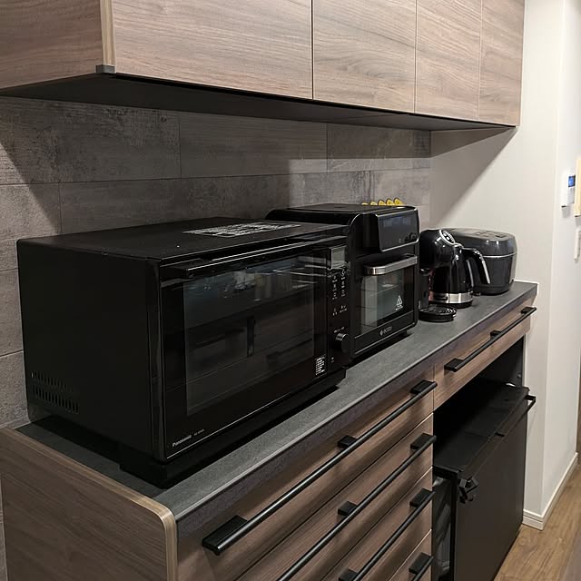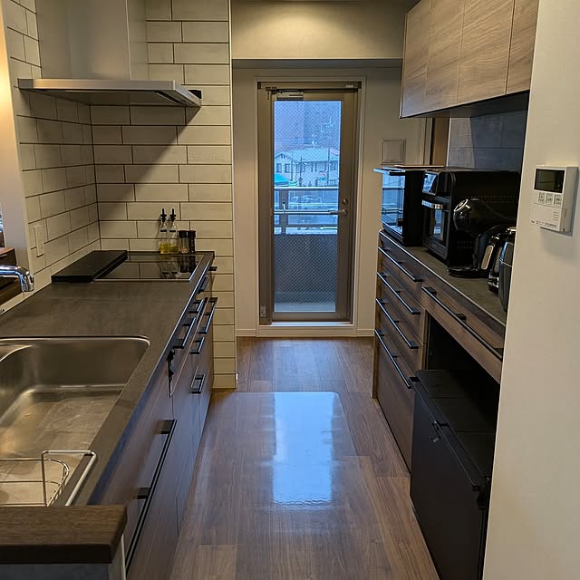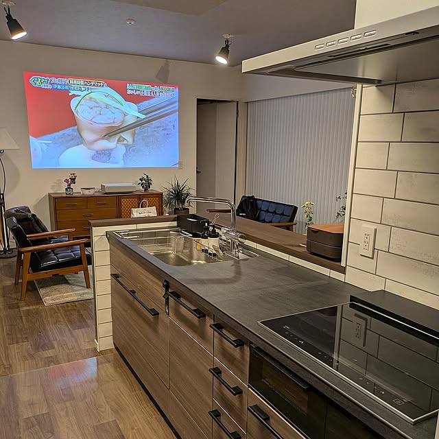 そしてキッチンは、そこからも大きな開口のあるLDKの魅力を味わえるようにと、吊戸棚を外し、壁を抜くリノベーションをされています。視界の抜ける心地の良い対面キッチンは、okayuさんのお気に入り。そこでさらに詳しくお伺いすると、キッチンはカップボードも含めてセラミックトップが採用されているとのこと。『キズがつきにくかったり、熱いものもそのまま置けたりと、機能も見た目も◎です』とokayuさんは語ります。
