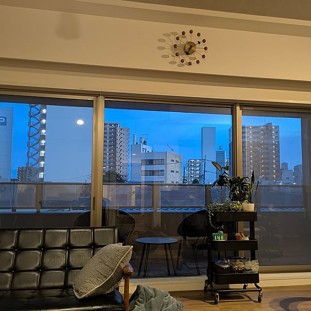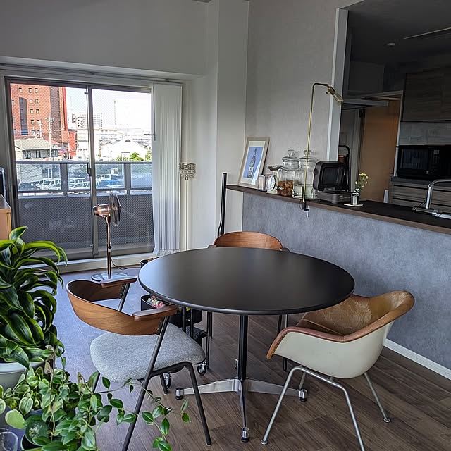 ハーマンミラーのコントラクトベース (丸テーブル)です。ダイニングテーブルは大きさや形状などかなり迷ったのですが、結果的に我が家にはピッタリな選択でした。脚が邪魔にならず、お客さまが来て人数が増えても対応しやすいので気に入っています。