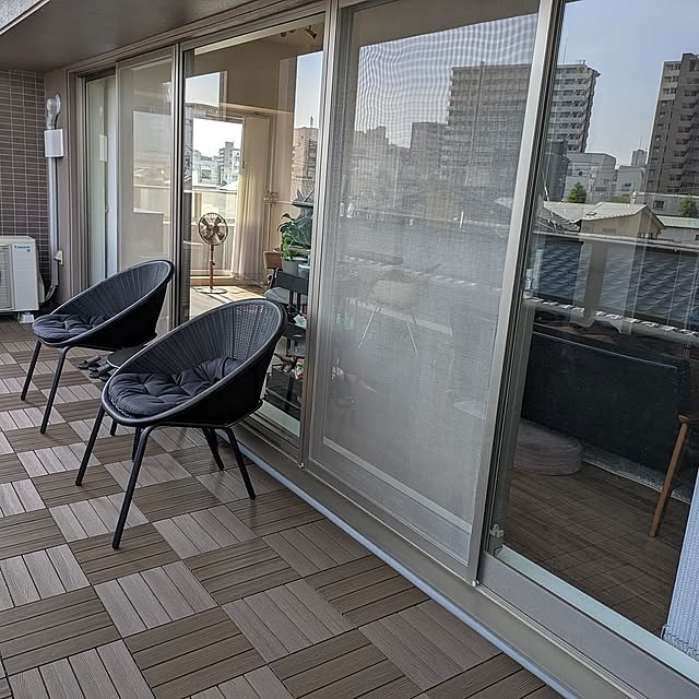 一面を占める窓があるLDKの魅力は、室内からの眺めが良く、開放的であることだと思います。そればかりかokayuさん宅の場合は、その先にあるバルコニーもとても広々としているから、テラス風にしたり、アウトドアリビング感覚で楽しんだりできるのも良いところです。