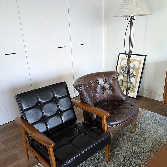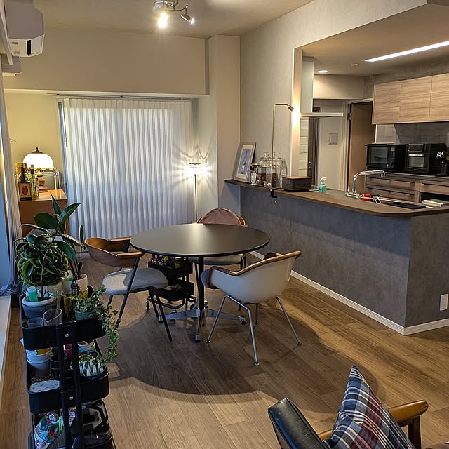 夫婦ともに面倒くさがりなので、汚しても味になるような家にしたいと思い、少しだけインダストリアル感のある雰囲気にしました。もともとミッドセンチュリーっぽい家具が好きで集めていたため、以前より広い空間に好きな家具が置けるようになってうれしいです。