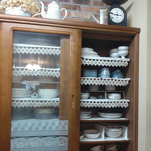 生活感と調和するのも、カントリースタイルの良さではないでしょうか。だからこそ、キッチンという場所はカントリースタイルを楽しむにはうってつけかもしれません。Hujikoさんのように、食器棚や家電棚を見せる形にすることで、インテリア全体に日々の息吹やぬくもりが行き渡ります。同時に、こだわりのある家具や食器を、インテリアの一部として楽しむことができるのも良いですね。