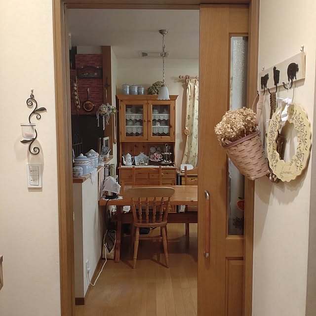 Hujikoさん宅では、素材の経年変化や素朴な質感、繊細なハンドメイド作品といった、カントリースタイルならではの魅力とたくさん出会えます。今回ご紹介するキッチンもまた、そんな魅力がたっぷりと詰まった空間。可愛さと味わい深さ、上品さと親しみやすさのバランスが絶妙ですね♪まずは、キッチンづくりのこだわりを教えてください。