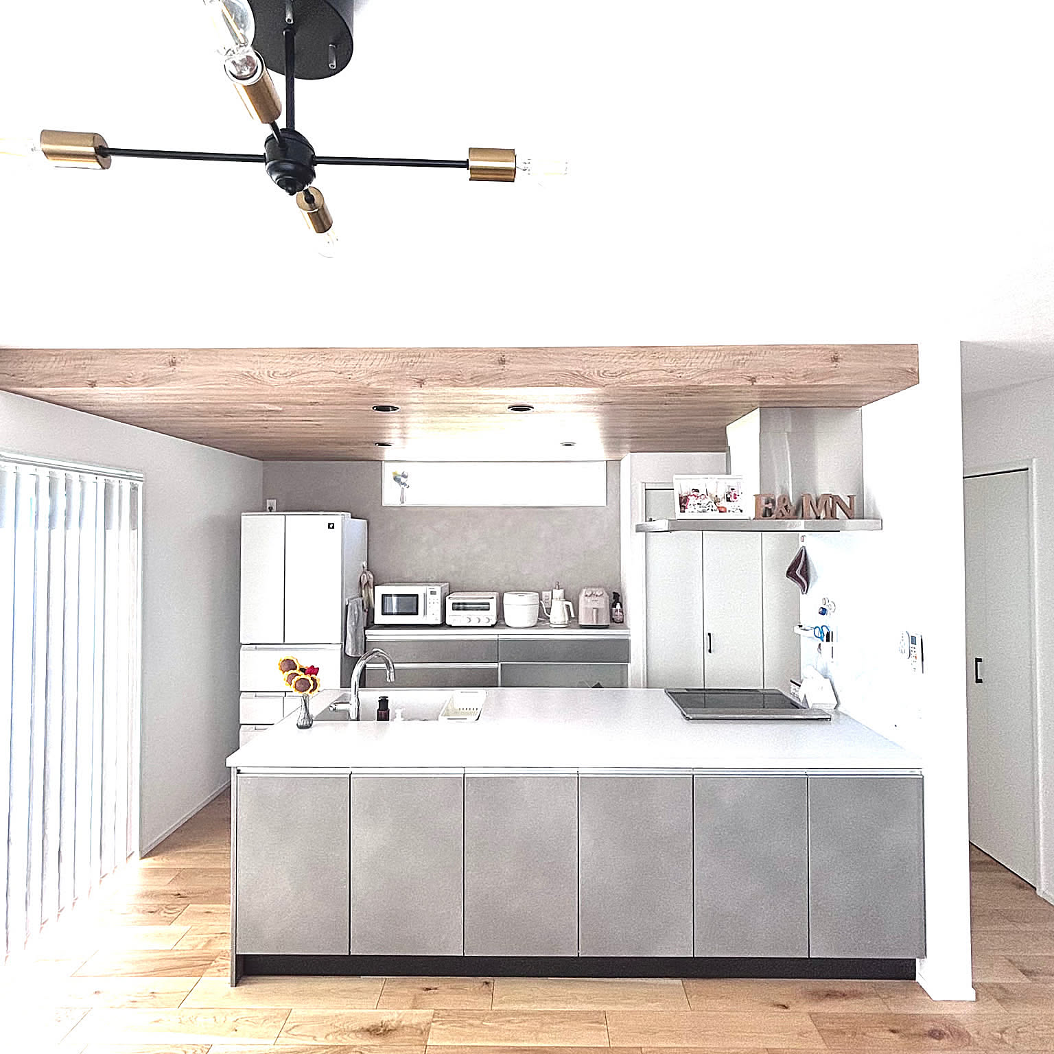 「下がり天井で空間にメリハリをつけています。天井の木目が、キッチン全体にぬくもりをプラスしてくれるのも良いところ。」